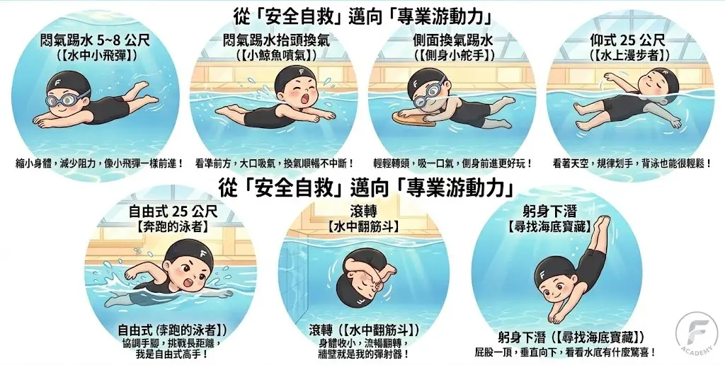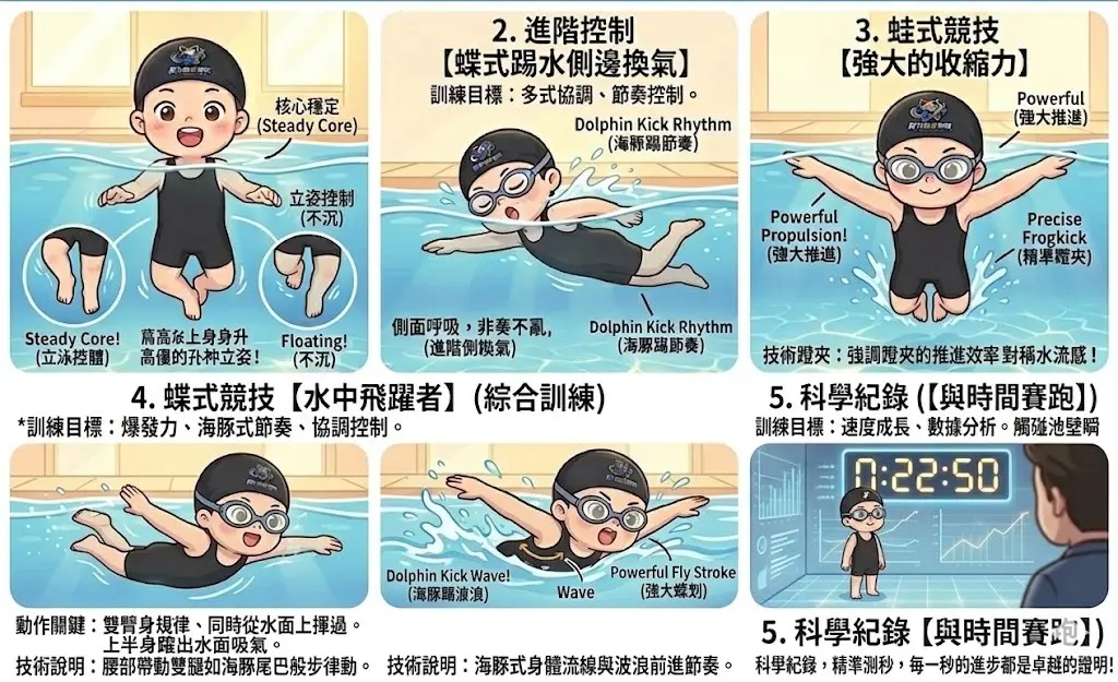 系統化運動訓練、專業游泳訓練、學齡兒童體適能、小朋友學游泳